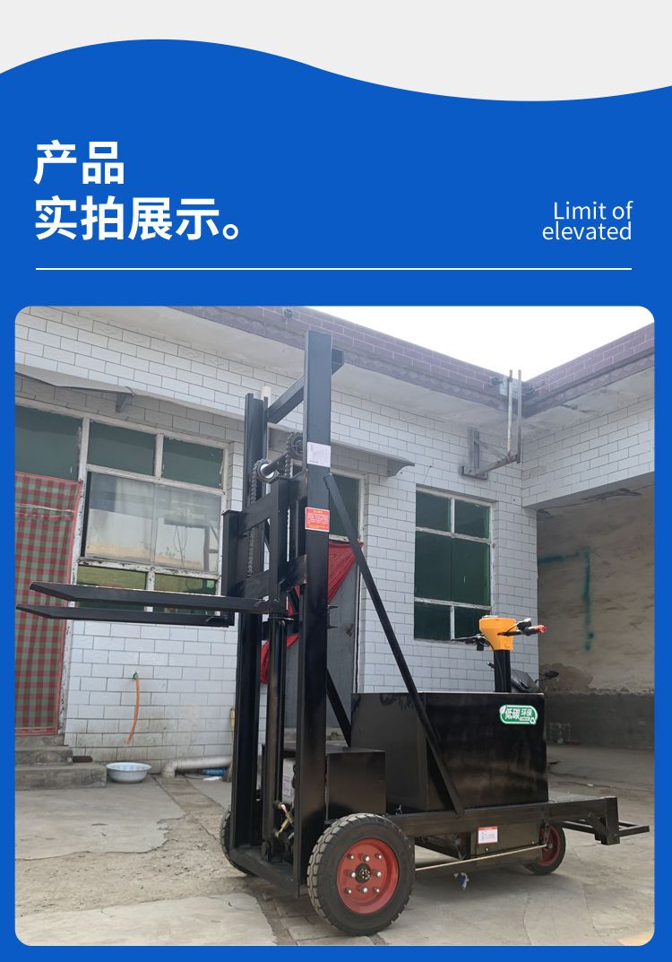 龙口市全电动叉车1吨2吨小型手动液压升高堆高机步行式站驾铲车装卸堆垛